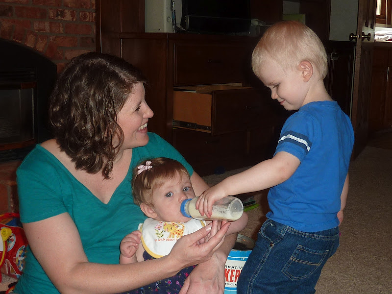 | We babysat a friend's little girl and Ben was a big helper, wanting to feed her the whole bottle all by himself. Hopefully this bodes well for when baby sister shows up! |